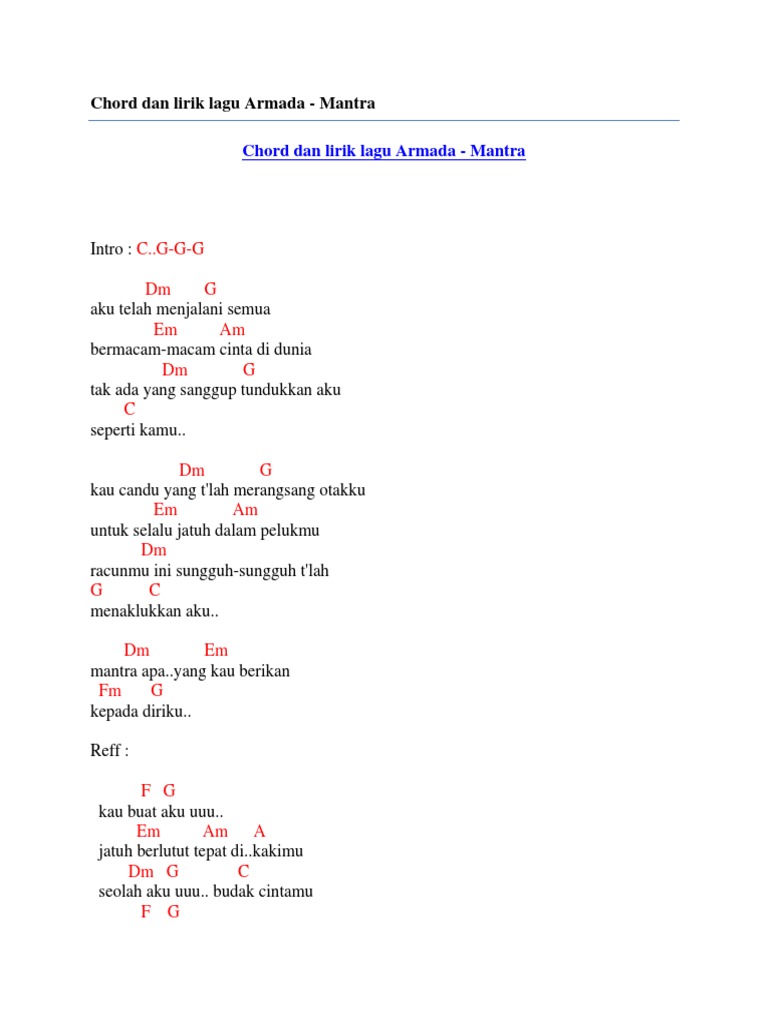 Chord Dan Lirik Lagu Armada Mantra Pdf