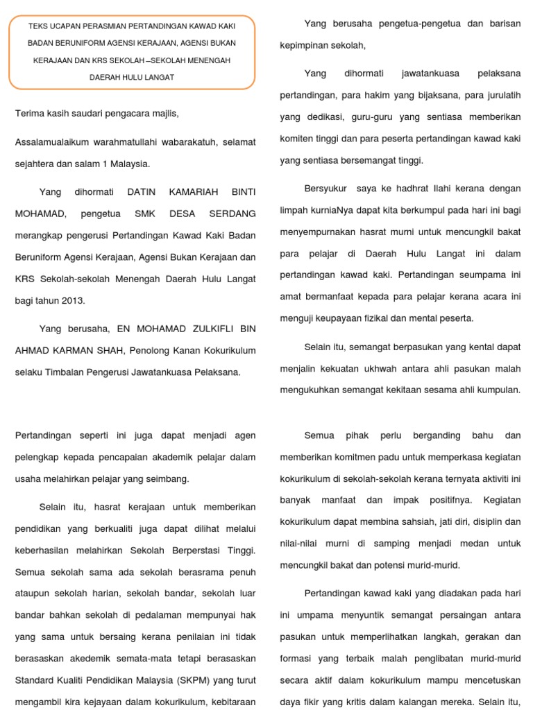 . Kamu haruslah memilih sama ada mahu bermain bola sepak atau menyertai kawad kaki kata Guru Penolong Kanan Kokurikulum itu. Kata-kata itu masih terngiang-ngiang dalam fikirannya dan menyebabkan Amar dalam dilema. Amar tarikh pertandingan kawad kaki peringkat daerah telah dipinda.